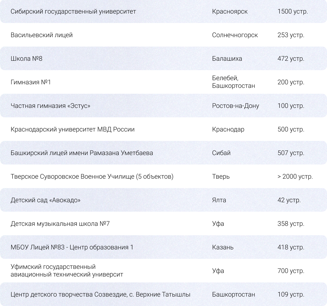 | Образовательные учреждения | менее 3 000 м2 | + |