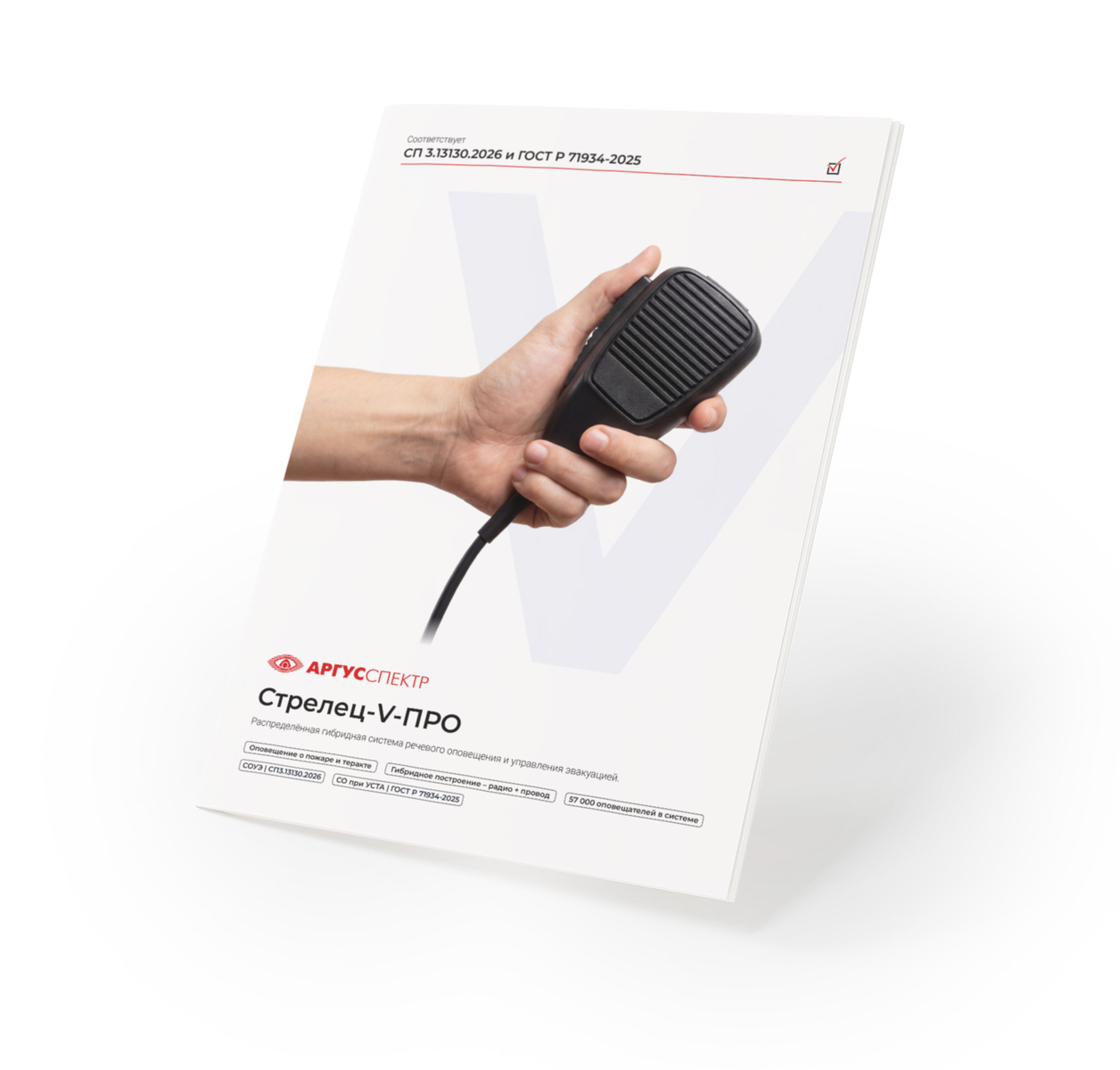 Главная премьера – гибридная система речевого оповещения «Стрелец-V-ПРО» с поддержкой аварийного микрофона. Решение разработано с учётом требований новой редакции СП 3.13130.2026 и ГОСТ Р 71934-2025. Система объединяет проводные и радиоканальные технологии и обеспечивает:
